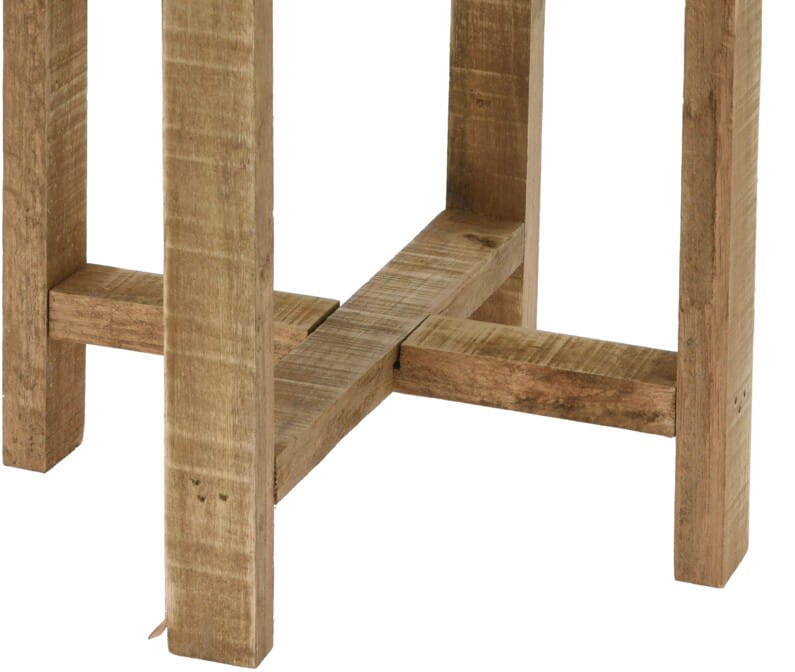 Wykonany z metalu i drewna.