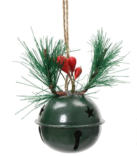 Świąteczny dzwonek z dekoracją z gałązki choinki 14 cm