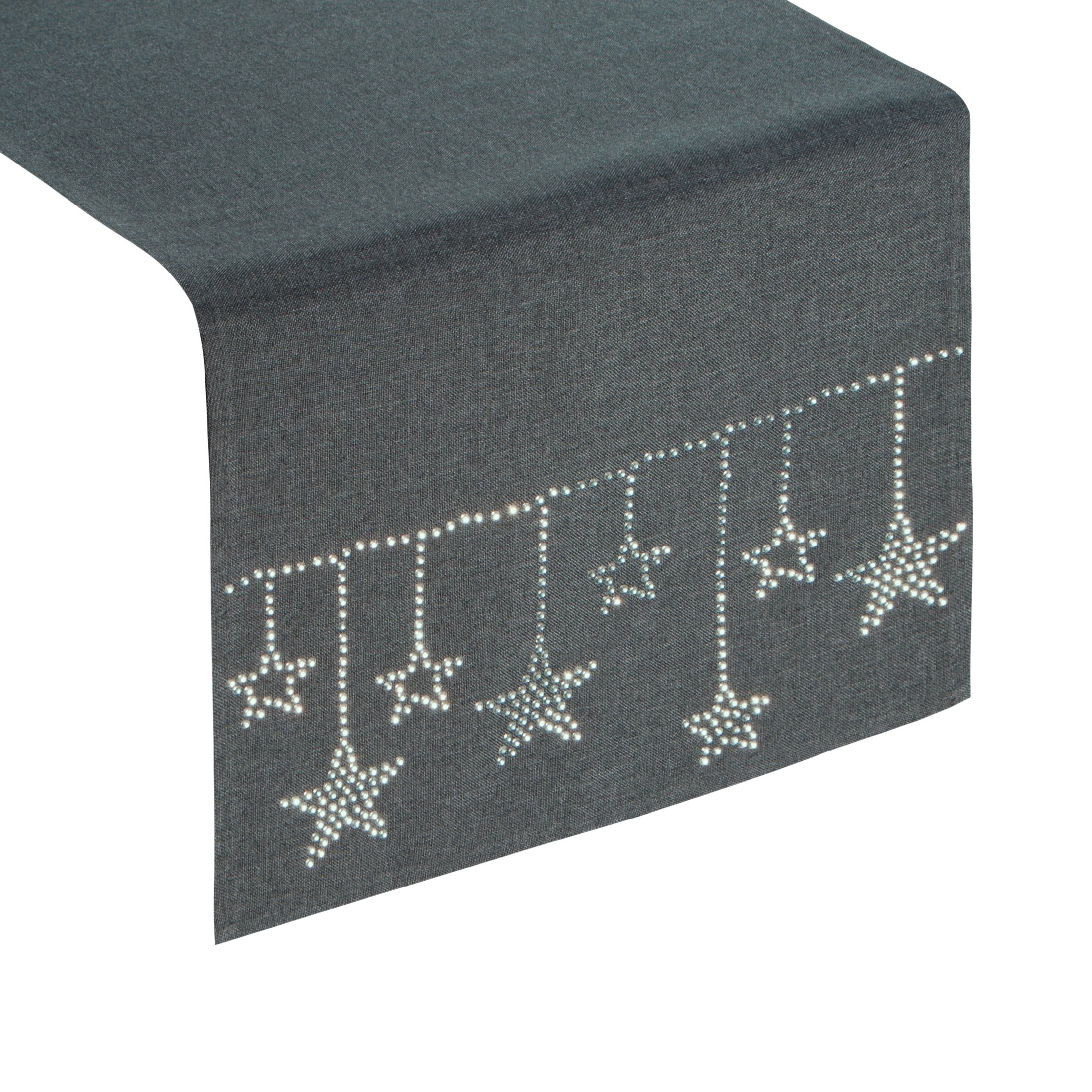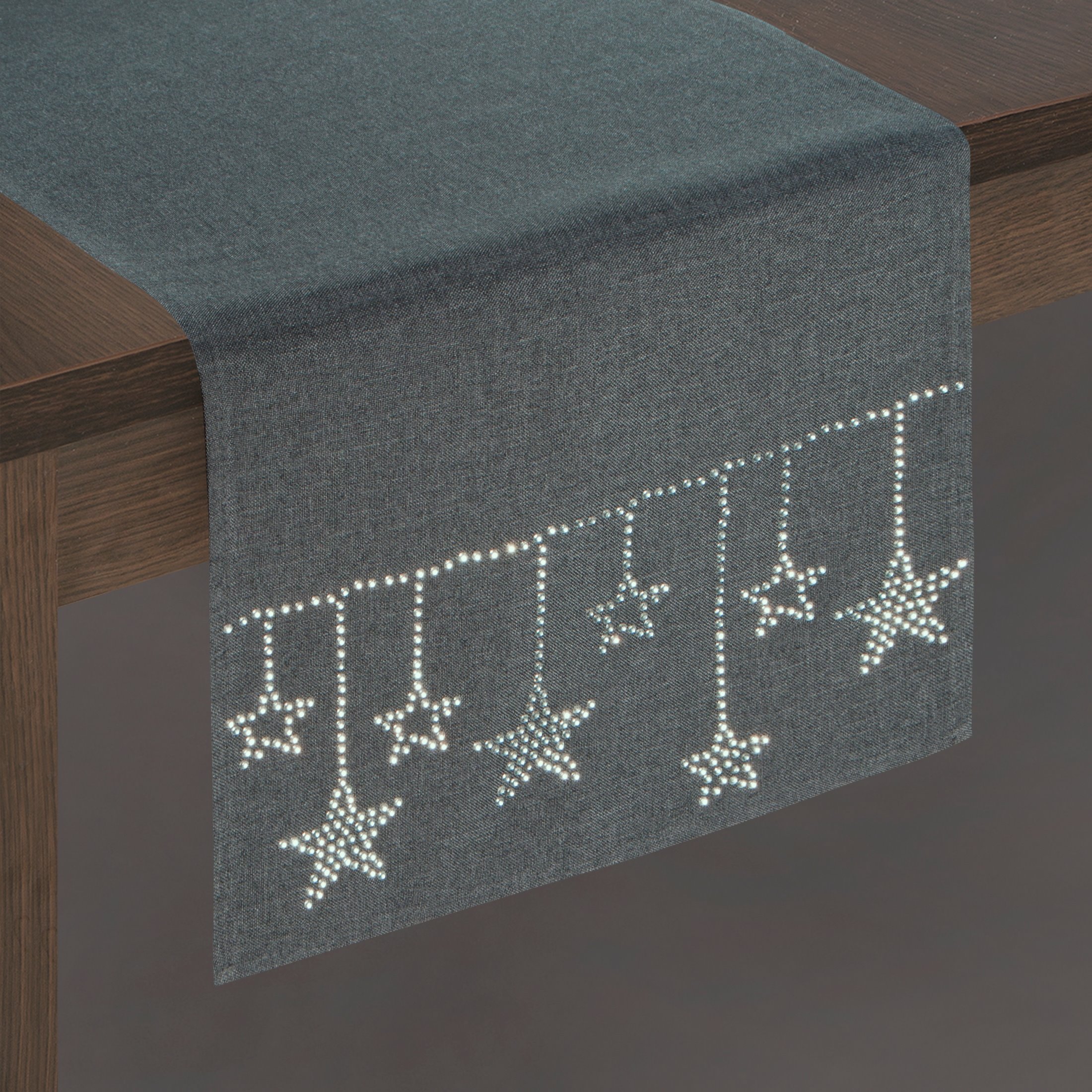 Bieżnik 33 x 140 cm grafitowy z aplikacją ze srebrnych kryształków