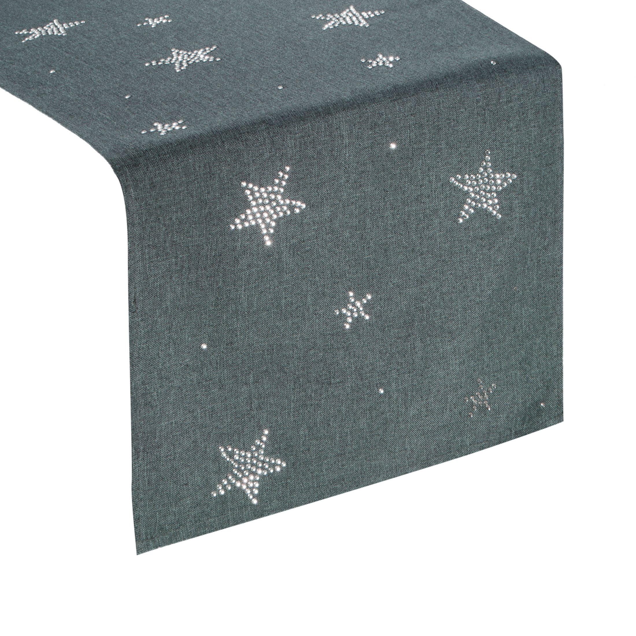 Bieżnik 33 x 140 cm grafitowy z aplikacją ze srebrnych kryształków