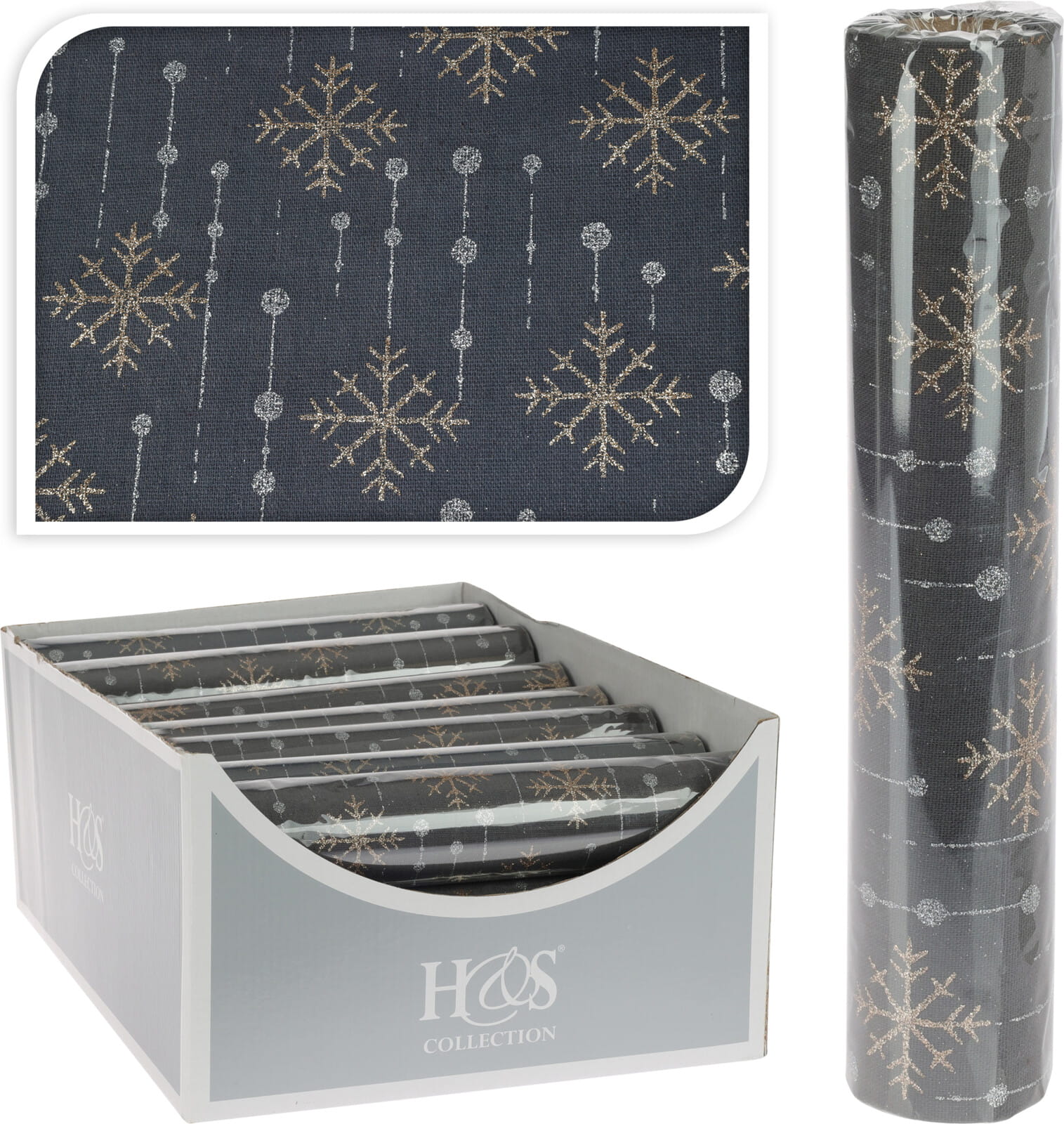 Bieżnik ma błyszczące wykończenie, które odbija światło, dodając blasku i elegancji.