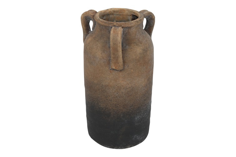 Brązowy wazon z trzema uszami z terakoty 26 cm – efekt postarzenia