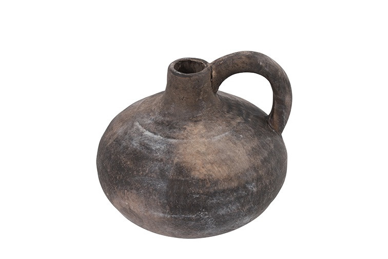 Dekoracyjny wazon z uchem, wykonany z terakoty w ciepłym brązowym odcieniu, z subtelnym efektem postarzenia i przetarć. Jego naturalna, lekko surowa faktura nadaje wnętrzu wyjątkowego charakteru, wpisując się w aranżacje w stylu rustykalnym, vintage, boho czy klasycznym.