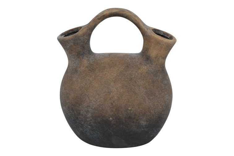 Dekoracyjny wazon wykonany z terakoty w ciepłym brązowym odcieniu, z uchwytem u góry i miejscem na dwa kwiatki. Subtelny efekt postarzenia i delikatne przetarcia nadają mu wyjątkowego charakteru, podkreślając rustykalny, vintage’owy lub boho styl wnętrza.