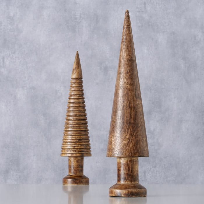 Świąteczna figurka w kształcie choinki wykonana z drzewa mango to elegancka dekoracja, która dodaje świątecznego uroku do każdego wnętrza.