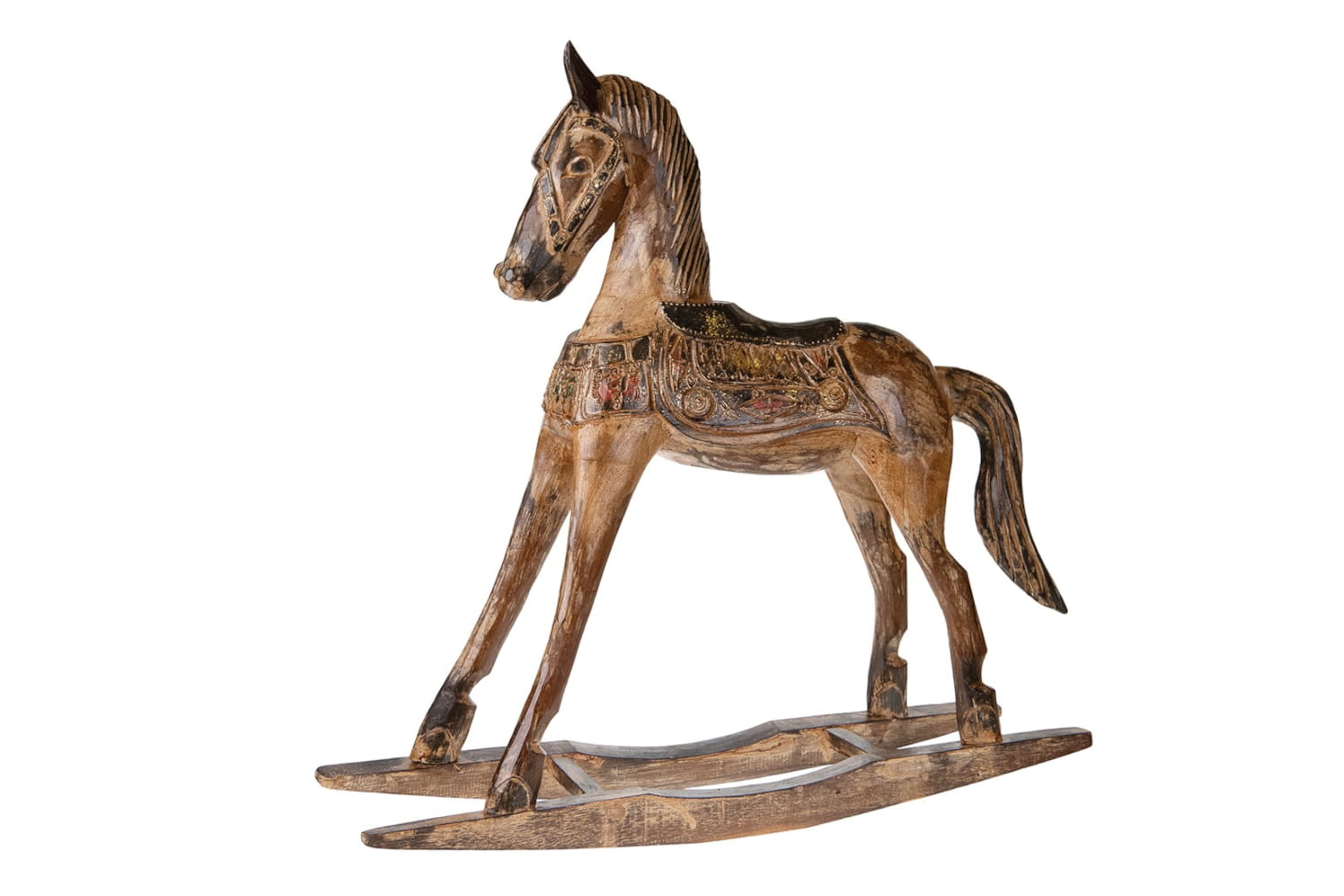 Przedmiotem oferty jest dekoracja w kształcie drewnianego konika na biegunach.