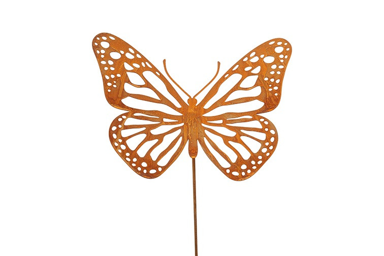Dodaj wyjątkowy akcent do swojego ogrodu, tarasu lub balkonu dzięki tej dekoracji w formie piku z motylem. Wykonana z trwałego metalu, pokryta rustykalnym efektem rdzy, świetnie komponuje się z naturalnym otoczeniem i dodaje wnętrzu lub przestrzeni zewnętrznej niepowtarzalnego charakteru.