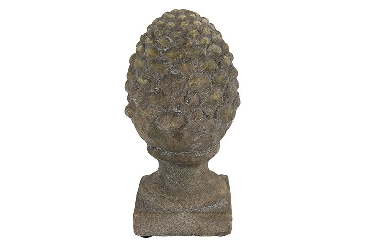 Elegancka dekoracja w kształcie szyszki osadzona na stabilnym postumencie, wykonana z terakoty w naturalnym, ziemistym odcieniu. Efekt postarzenia oraz subtelne przetarcia nadają jej wyjątkowego charakteru i sprawiają, że idealnie wpisuje się w aranżacje w stylu rustykalnym, vintage, boho czy klasycznym.