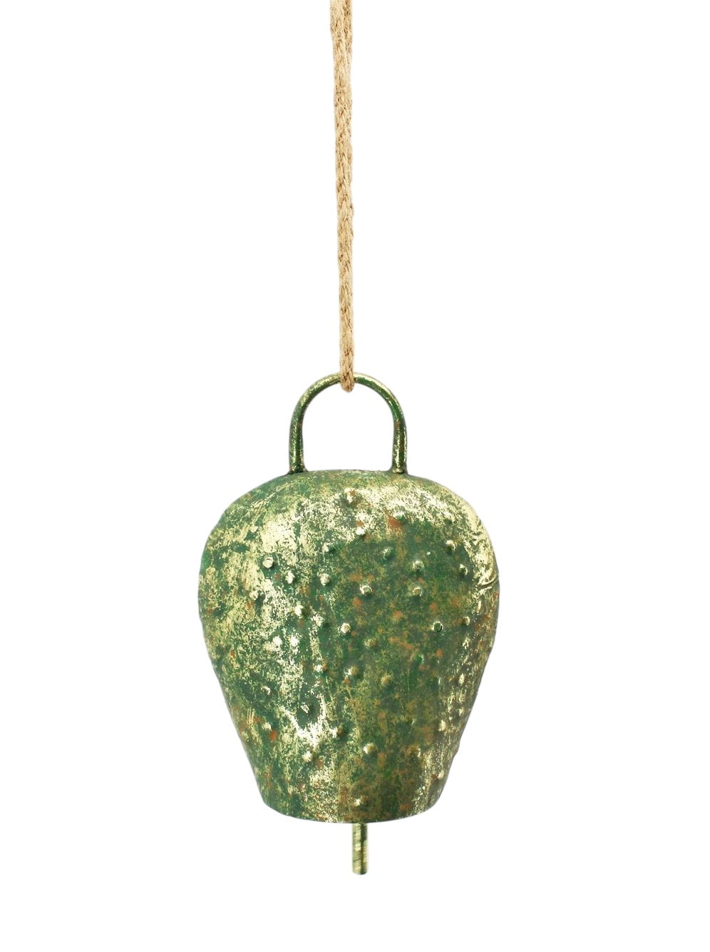 Stylowa i oryginalna zawieszka w kształcie dzwonka, wykonana z metalu w kolorze zielony postarzały.