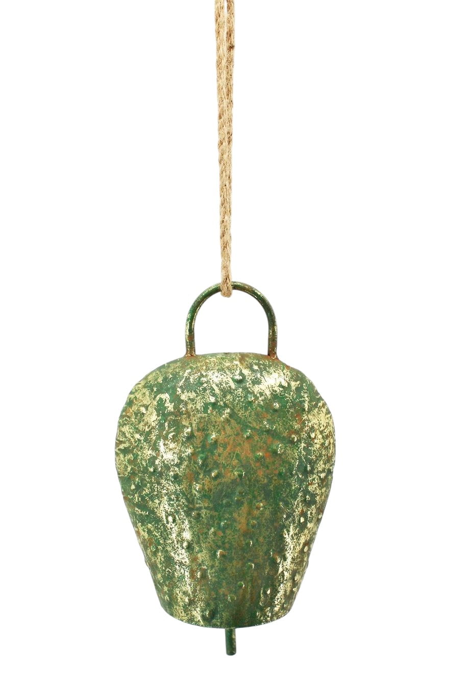 Stylowa i oryginalna zawieszka w kształcie dzwonka, wykonana z metalu w kolorze zielony postarzały.