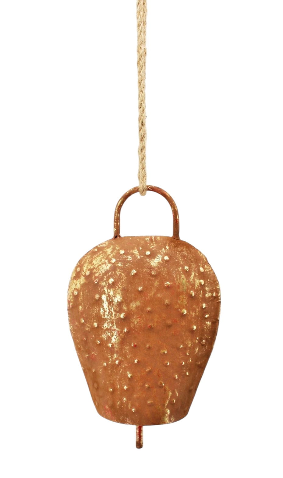 Stylowa i oryginalna zawieszka w kształcie dzwonka, wykonana z metalu w kolorze brązowy postarzały - efekt rdzy.