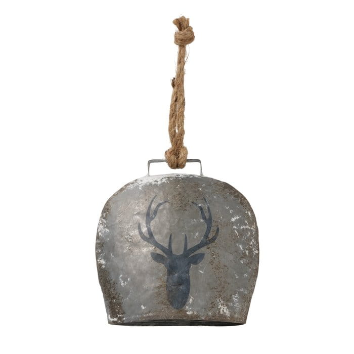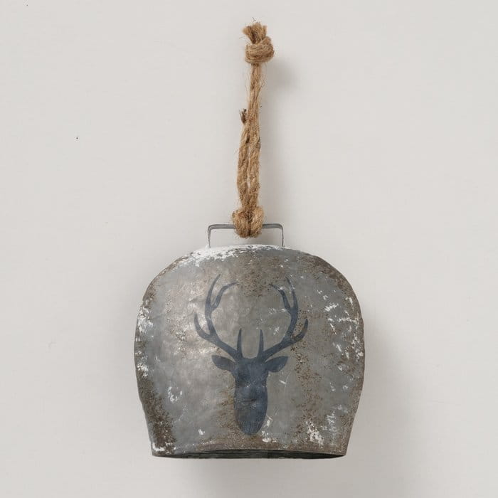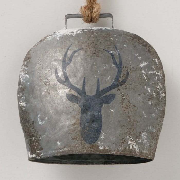 Dekoracyjna zawieszka – metalowy dzwonek z reniferem 15 cm