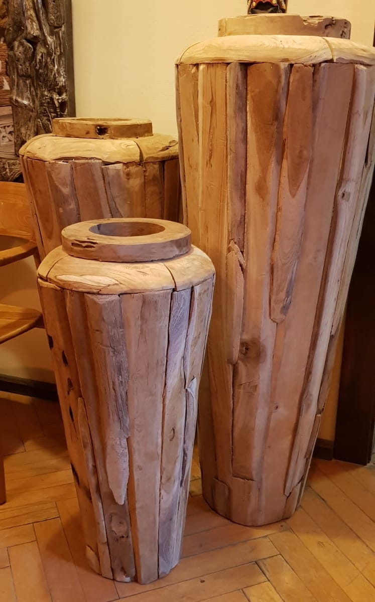 Duży Wazon z Drewna Teakowego 80 cm
