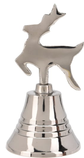 Dzwonek metalowy srebrny renifer 10 cm