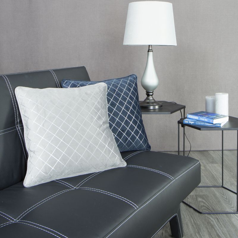 Przedmiotem oferty jest poduszka z wkładem wykonana z tkaniny welwetowej - ozdobiona błyszczącą srebrną aplikacją.