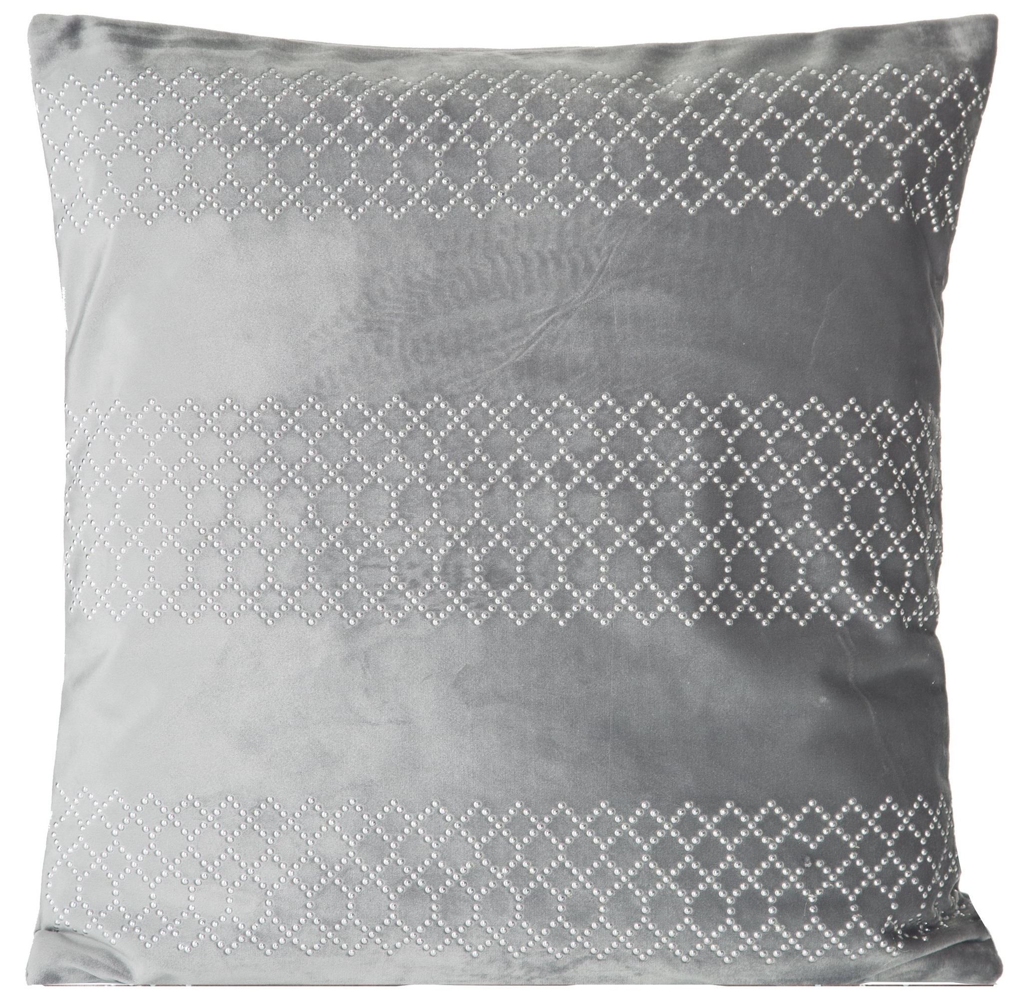 Przedmiotem oferty jest poduszka z wkładem z miękkiej welwetowej tkaniny, zdobionej pasami ornamentowych aplikacji z lśniących drobinek.