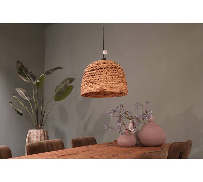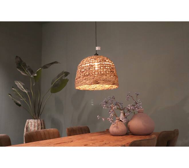 Stylowa lampa sufitowa wykonana z naturalnego hiacyntu wodnego to wyjątkowy element dekoracyjny, który wprowadza do wnętrza ciepło i przytulną atmosferę. Naturalny splot materiału nadaje lampie lekkości oraz subtelnego, organicznego charakteru, dzięki czemu doskonale pasuje do wnętrz w stylu boho, rustykalnym, skandynawskim lub naturalnym.