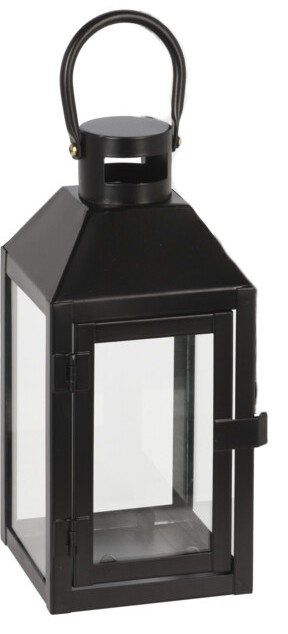 Latarnia dekoracyjna czarna z uchwytem i szybkami – 23,5 cm