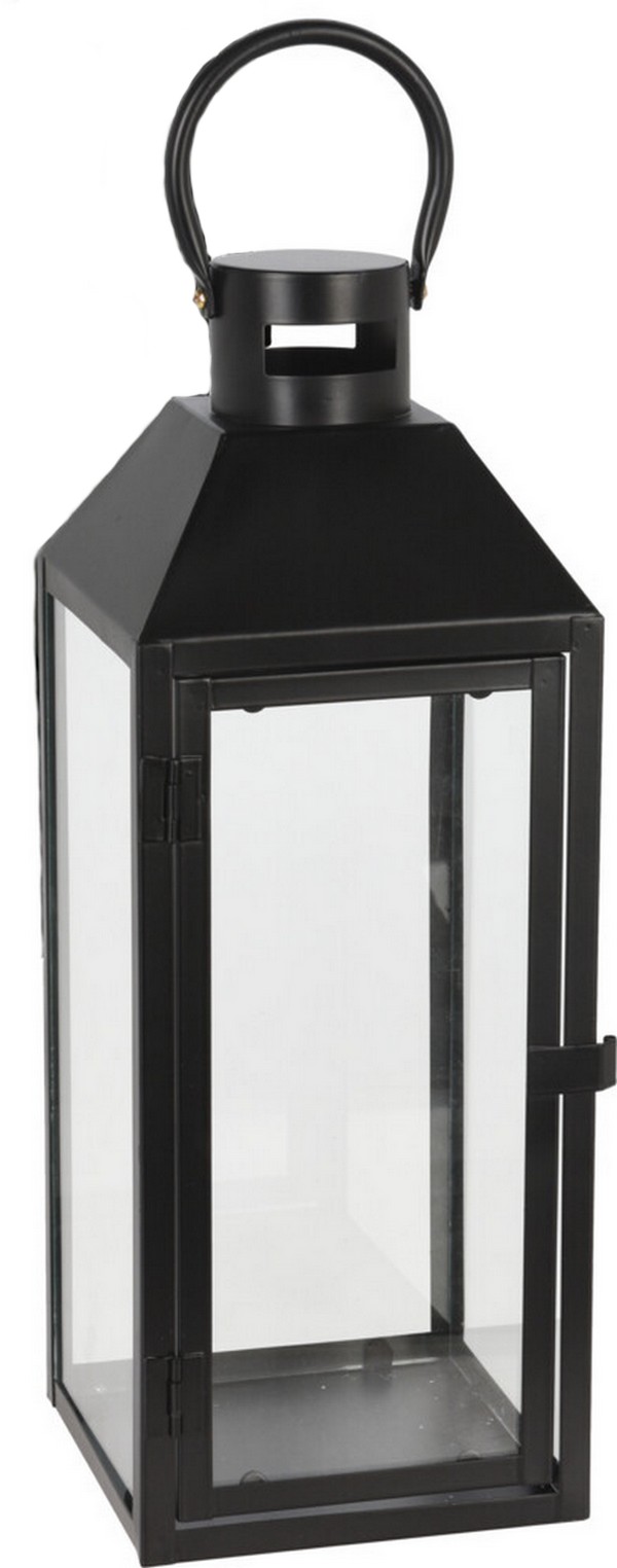 Latarnia dekoracyjna czarna z uchwytem i szybkami – 49 cm