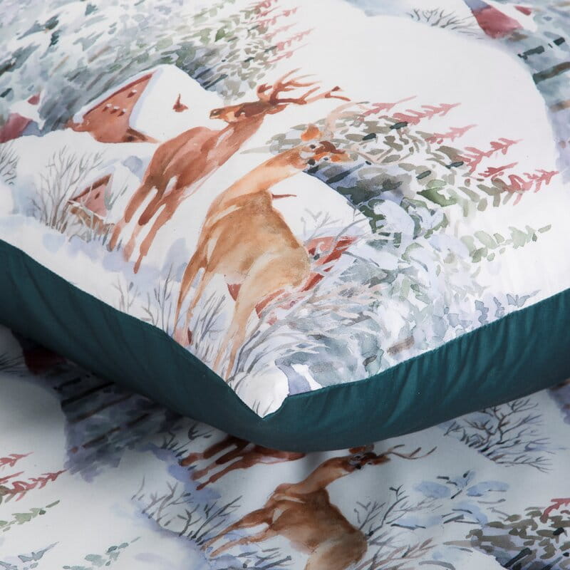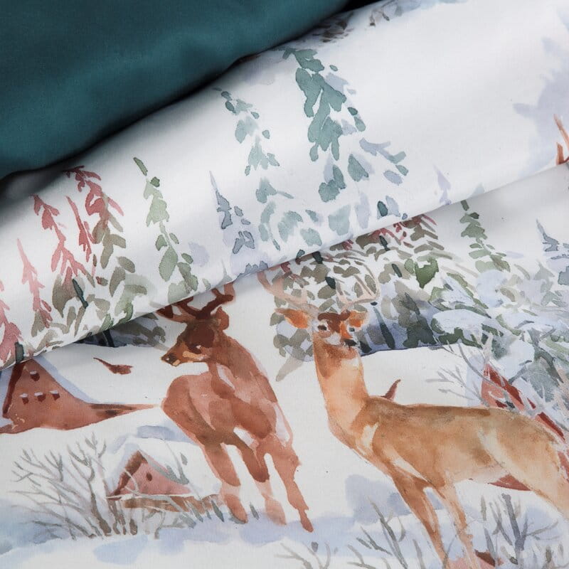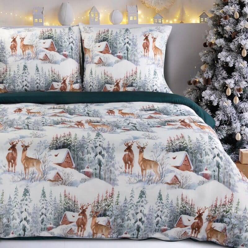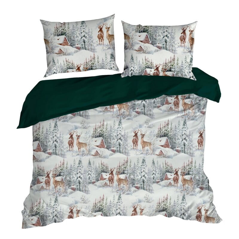 Delikatny nadruk o tematyce świątecznej nadaje pościeli wyjątkowego uroku i sprawia, że stanie się piękną ozdobą każdej sypialni w okresie zimowym.