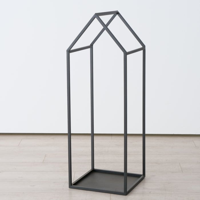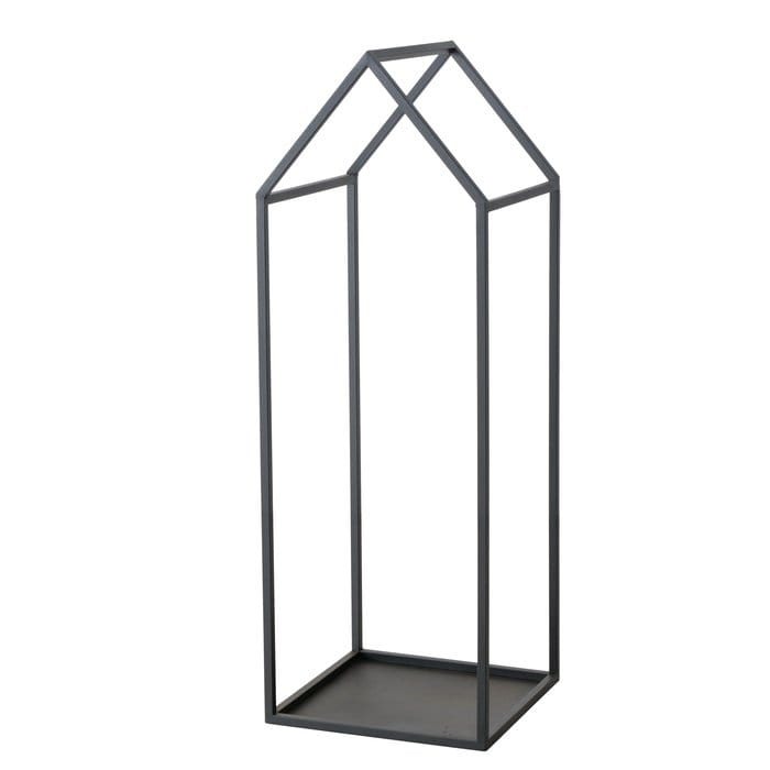 Przedmiotem oferty jest metalowy stojak na drzewo w kształcie domku.