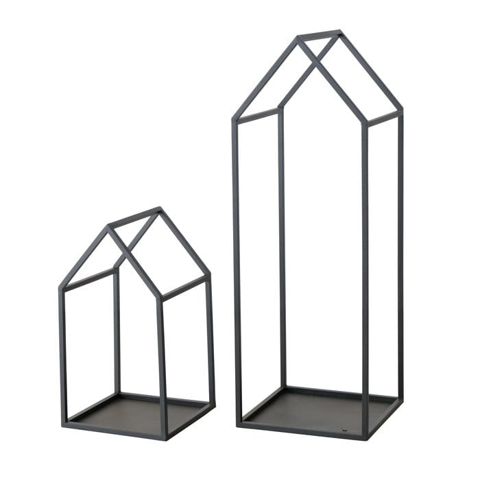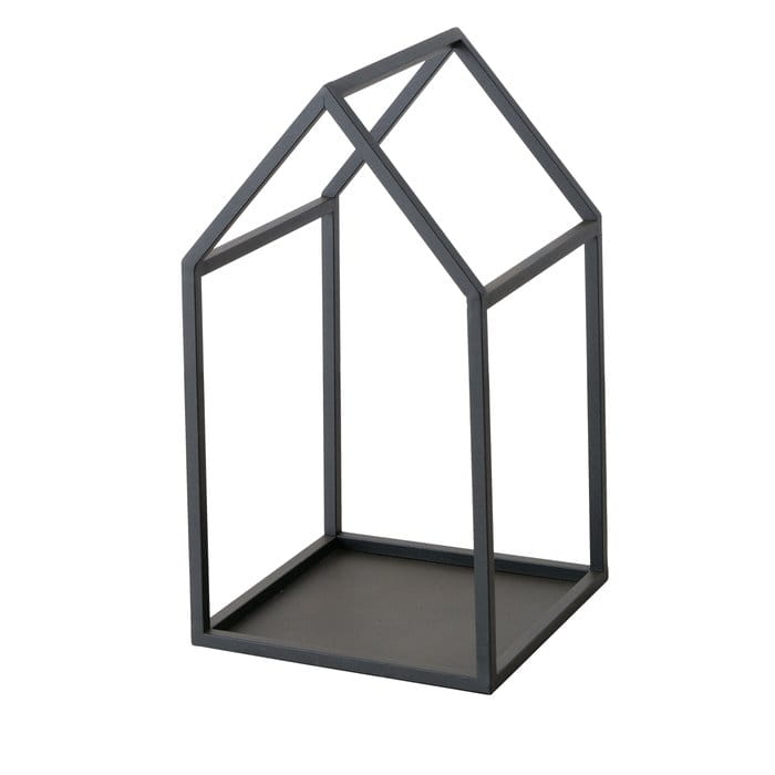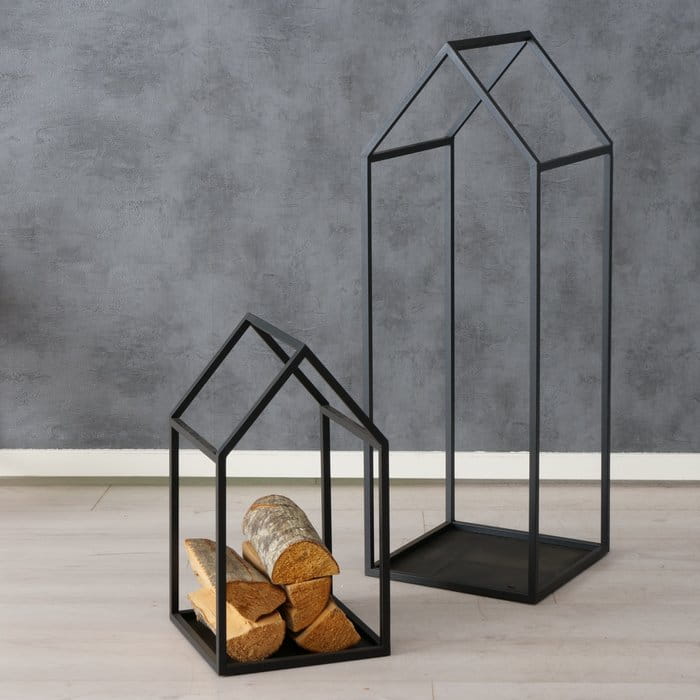 Przedmiotem oferty jest metalowy stojak na drzewo w kształcie domku.