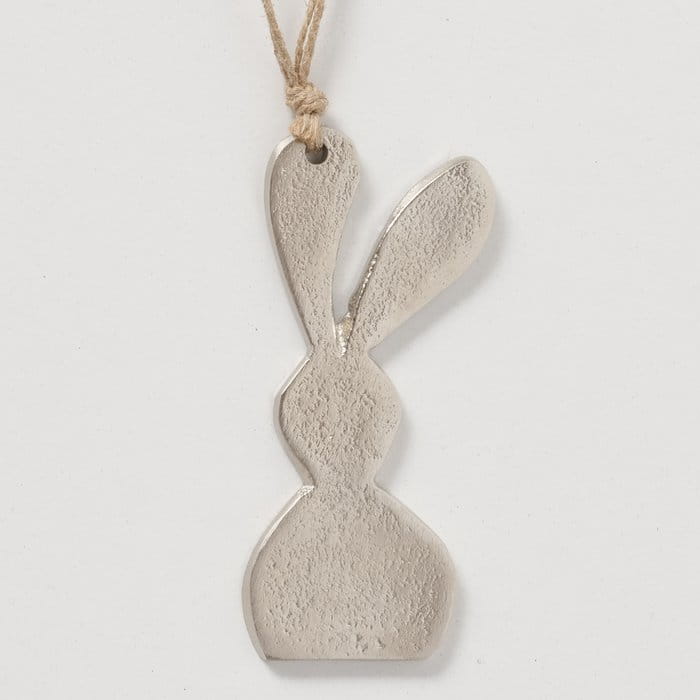 Metalowy zajączek w głębokim srebrnym kolorze to elegancka alternatywa dla tradycyjnych, kolorowych wielkanocnych dekoracji.